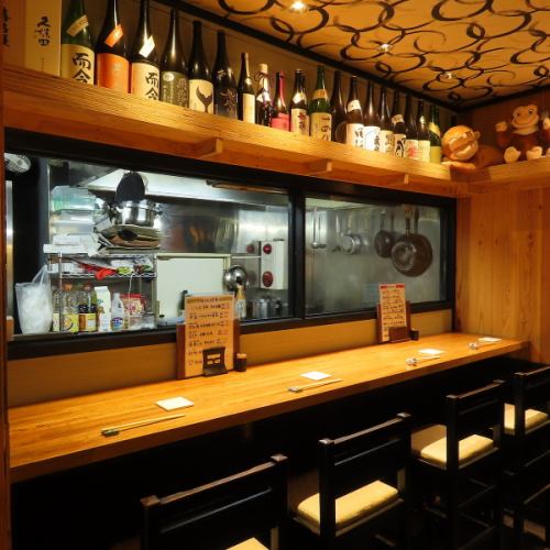 【調理風景を間近で見るカウンター席】カウンター席からは、職人が調理する様子を間近で見ることができます。料理が作られていく過程も五感で楽しむことができ、より一層食事が美味しく感じられます。お一人様でも気軽に利用しやすい空間です。